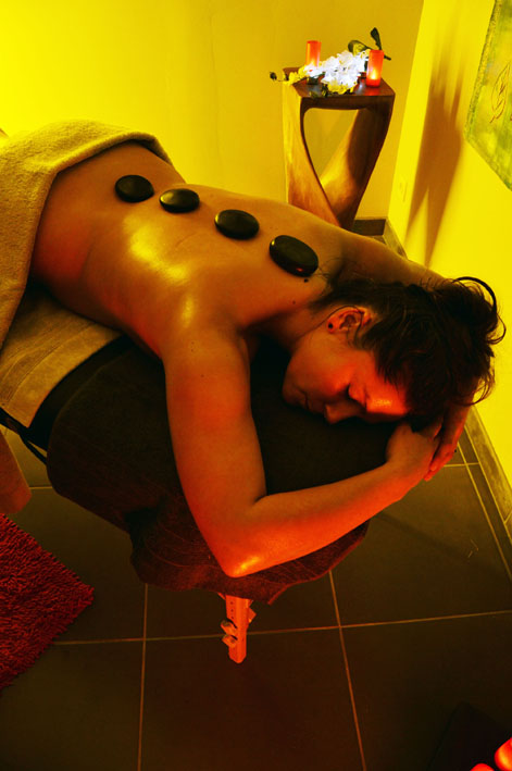 Le massage aux pierres chaudes utilise des pierres d'origines volcaniques de basalt pour leur vertu et leur capacité à retenir la chaleur. Les pierres chauffées à 50°C seront utilisées pour vous masser le corps dans son ensemble après que celui-ci ait été huilé. Les mouvements sont lents pour permettre à la chaleur de pénétrer en profondeur dans les tissus induisant ainsi lors du massage des effets physiologiques favorisant la circulation sanguine et lymphatique.