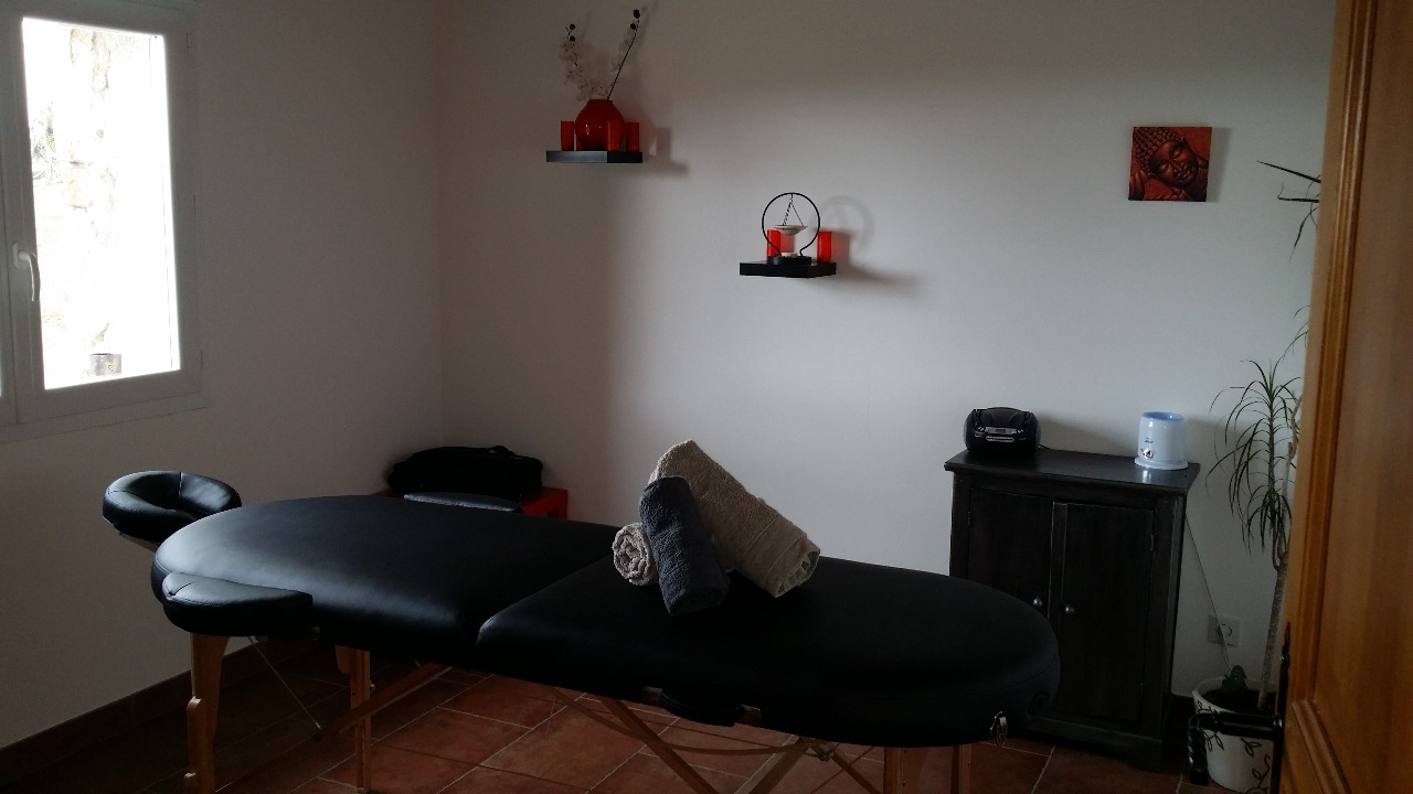 Je peux vous acceuillir dans mon espace dédié au massage et à la relaxation. Vous serez plongé dans une ambiance zen grâce à une musique apaisante, une lumière tamisée accompagnée de senteurs enivrantes. Vous serez massé sur une table de massage professionnelle vous apportant confort et sécurité.